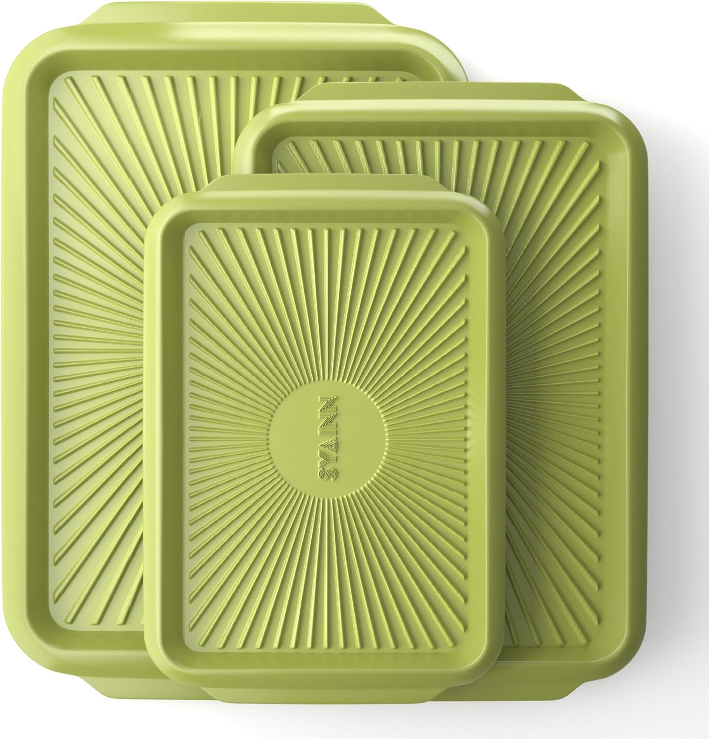 SYAINN Non-stick Ceramic Baking Sheet Set, 3 Pieces- Aluminum Steel Cookie Sheets for Baking-Includes Half/Quarter/Jelly Roll Pans-Warp Resistant, Toxic, PTFE & PFOA Free-Grenoble Green