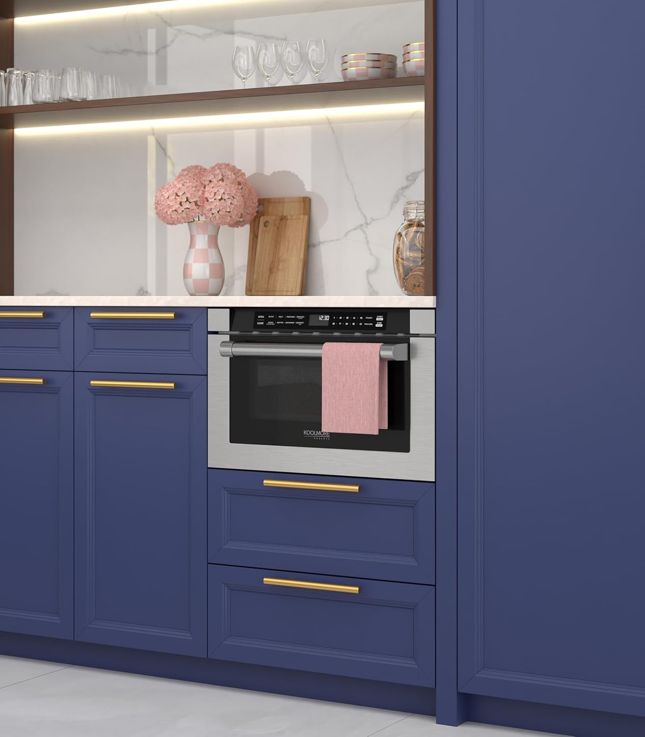 KoolMore Reserve 24 in. 1.2 cu. ft. Microwave Drawer with Electric Door Opening, 10 Power Levels, Sensor Cooking, Melt, Defrost, Bake, Roast, Broil, 1500 Watts, UL Certified in Black Stainless-Steel