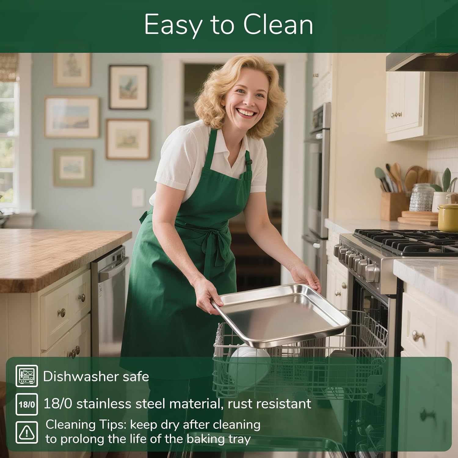 18/0 Stainless Steel Baking Sheet with Cooling Rack, 9.2 Inch Oven-Safe Non-Toxic Cookie Sheets for Baking, Coating Free & Rust Resistant for Healthy Family Baking, Easy to Clean, Heavy Duty