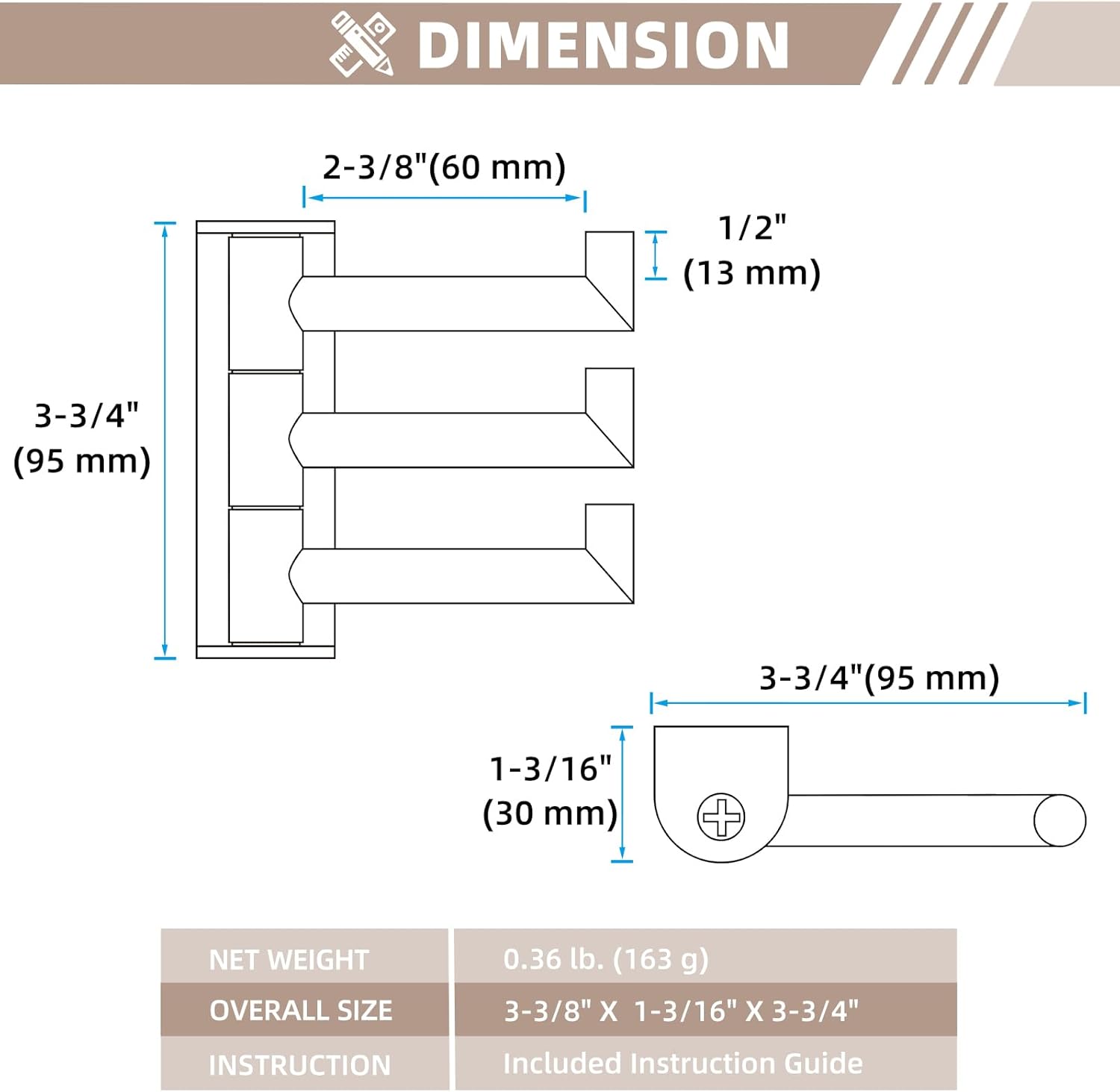 - EFFICIENT STORAGE SOLUTION: 2-3/8" (60mm) hanging length provides ample space to hold 3 items at once, such as towels, robes and kitchen tools, keeping everything neat and within reach