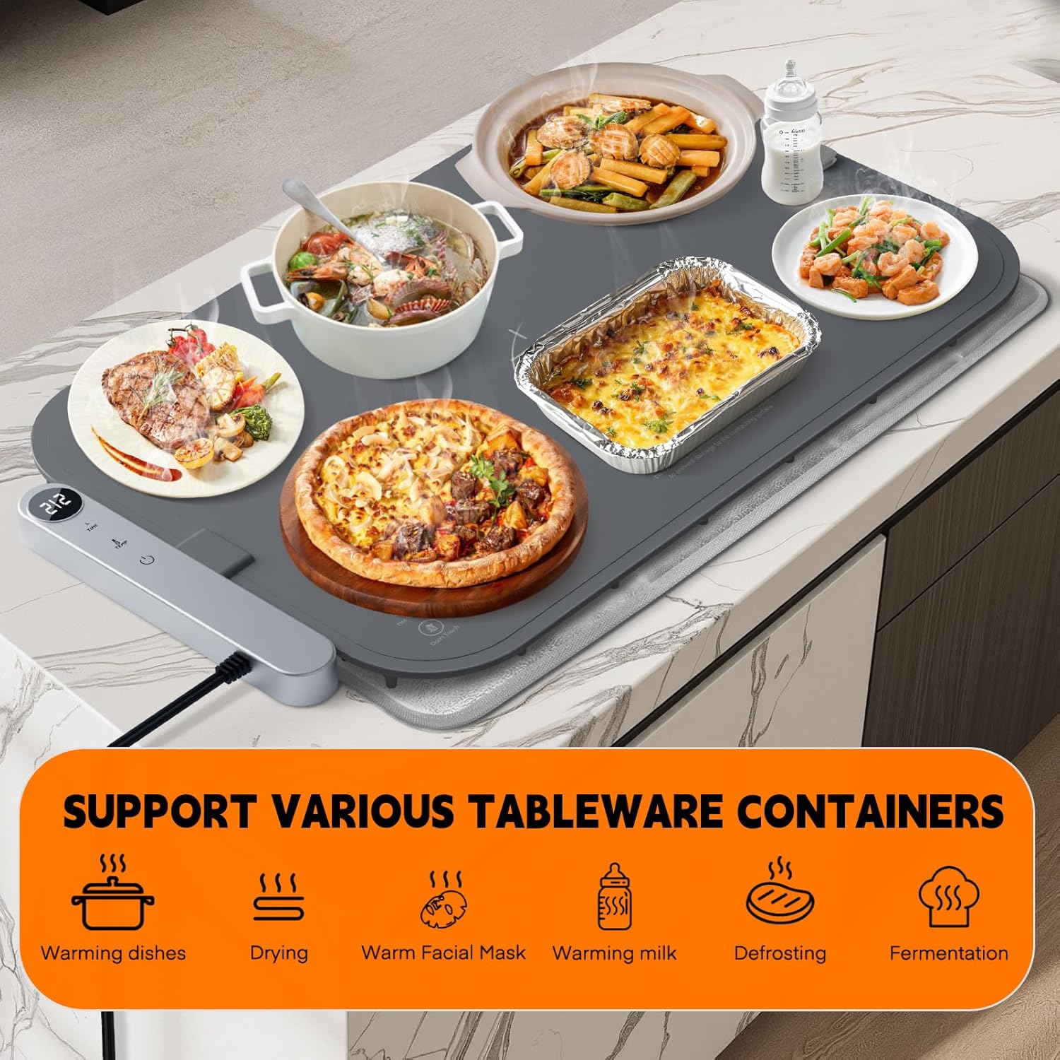 Homelove Food Warming Mat Waterproof - Electric Warming Tray with 6-Level Temperature and Hours Setting, Full Surface Graphene Heating, Dishwasher-Friendly Food Warmer Mat for Parties, Kitchen (Gray)