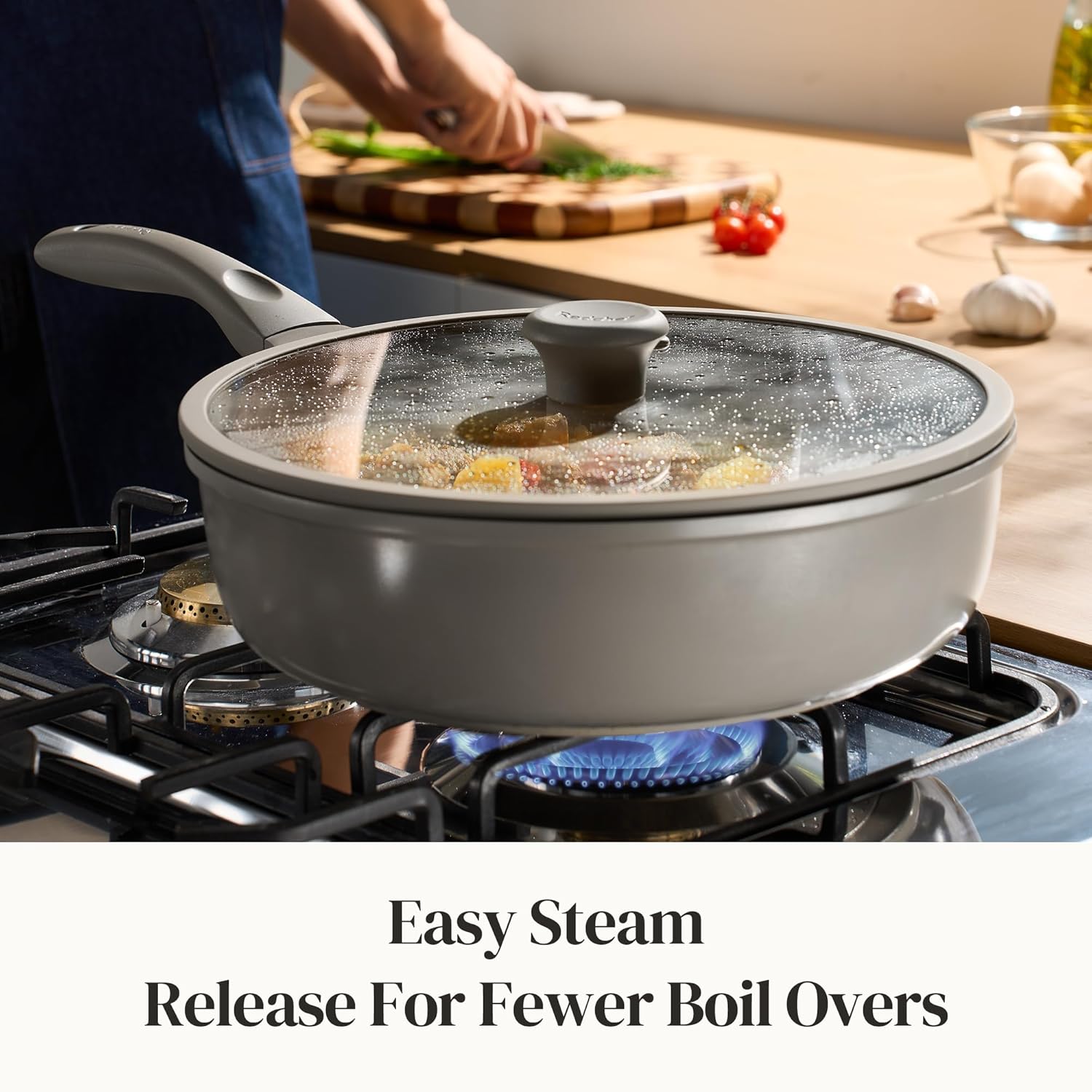 - UNIVERSAL KITCHEN VERSATILITY: Compatible with all cooktops including induction, gas, electric, and ceramic stoves. Engineered with stay-cool ergonomic handles for comfortable lifting and pouring. One pan replaces multiple pots—perfect as a deep frying pan, saute pan, or everyday non stick frying pans with lids solution