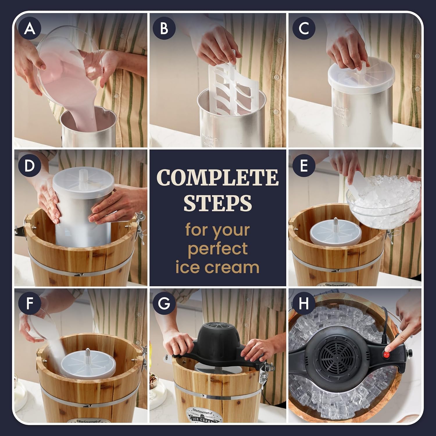 - EASY 3 STEP PROCESS: 1) Mix your favorite ingredients and place in canister, 2) assemble the unit and add ice + rock salt, 3) plug in and turn On.