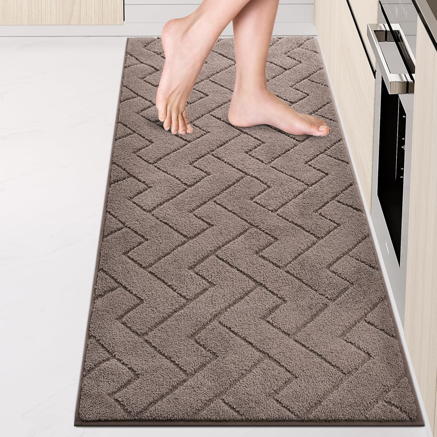 Machine Washable Kitchen Rugs 24" x 70", Non-Slip Kitchen Runner Rugs Mats for Floor, Absorbent Comfort Standing Mats for Kitchen, Sink, Laundry and Hallway, Rolled Packaging, Grayish Brown