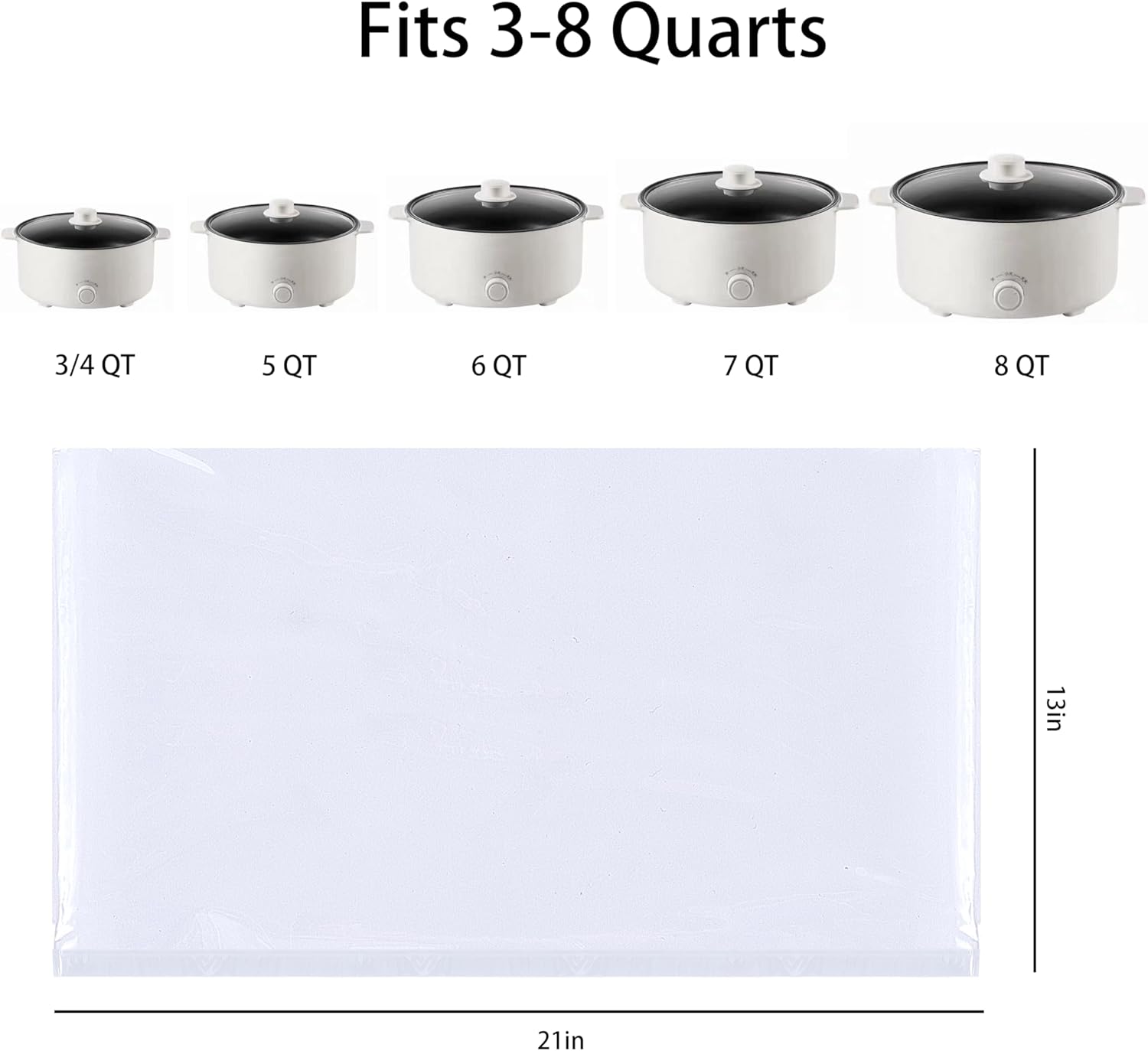 - 2. Extra-Large Oval Size (13" x 21") – Universal Fit: These slow cooker bags are generously sized to fit most 3 to 8-quart oval slow cookers. The large size ensures full coverage, preventing food from sticking to your pot’s surface.