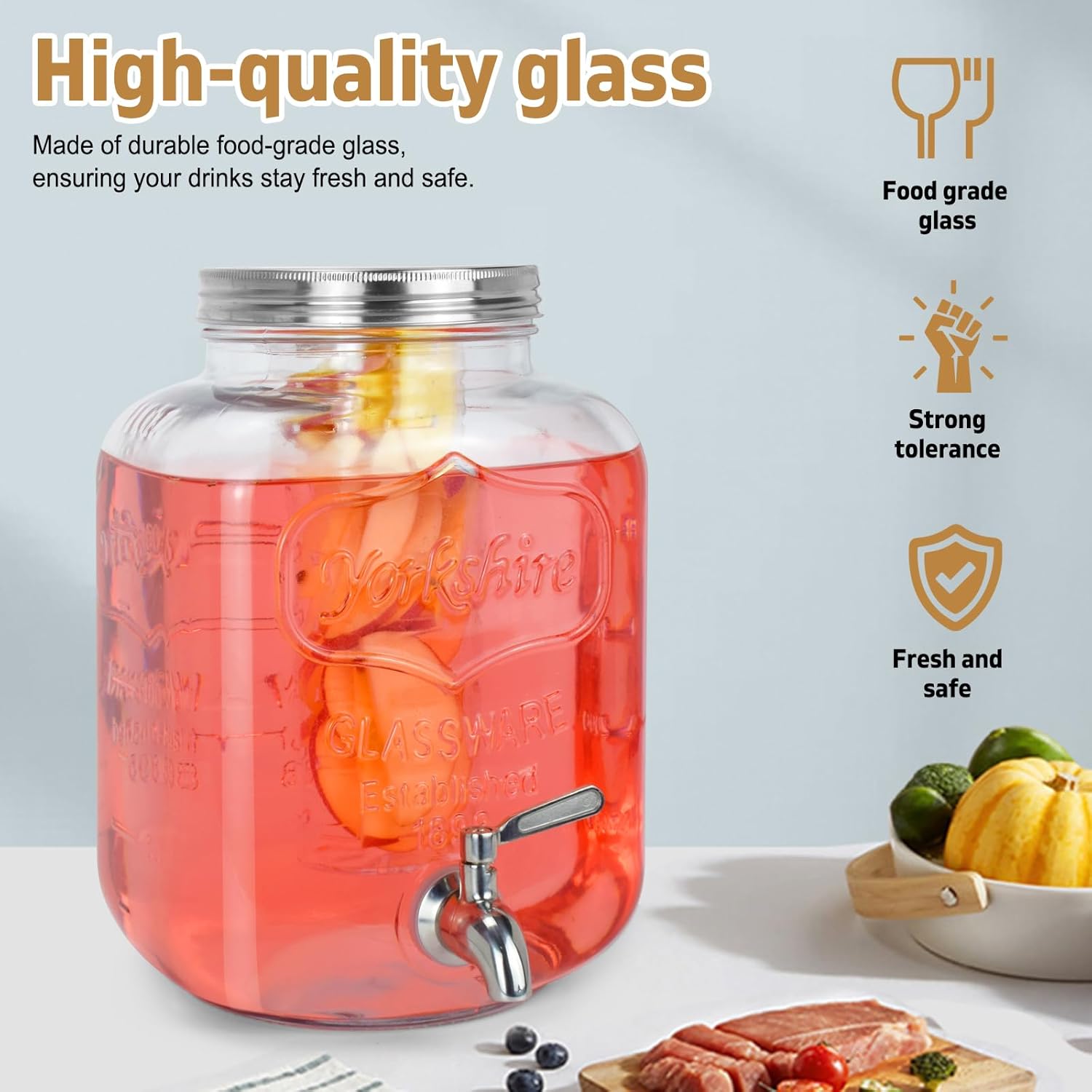 - Package Include:2 Glass Drink Dispenser ,2 Stainless Steel Spigots and Metal Bracket,1 Orange Ring Used As A Wrench.
