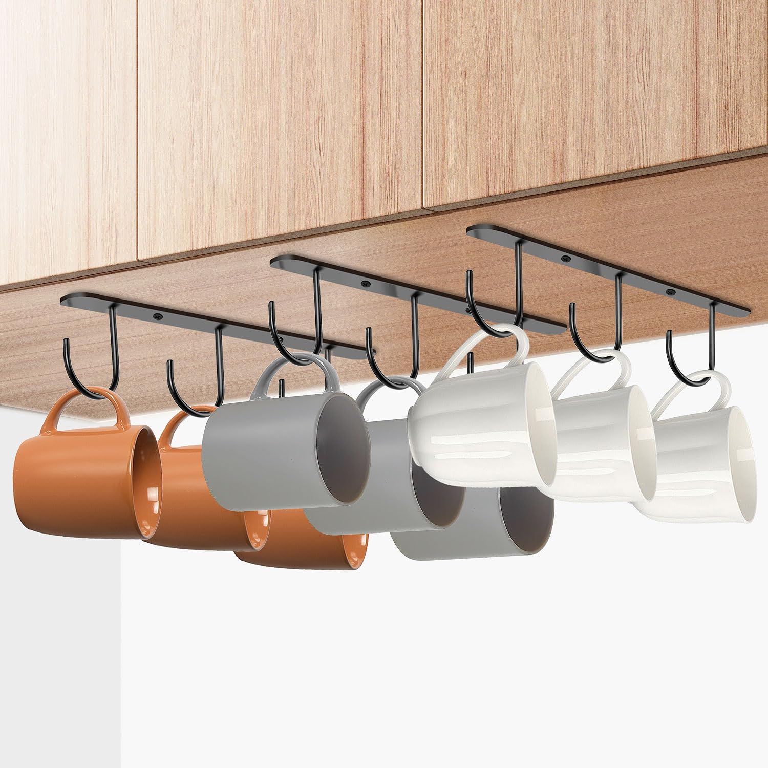 - 【What You Get】You will receive 3Pcs coffee mug organizer for cabinet and the required screws.