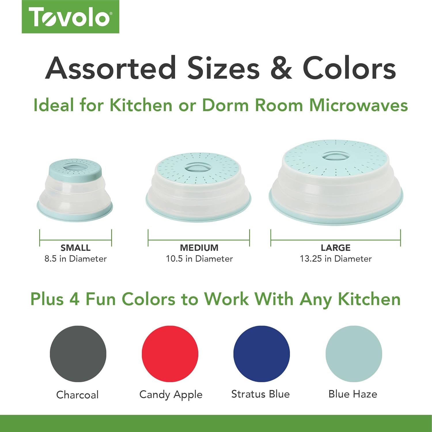 - Microwave Cover: The collapsible Tovolo Small Microwave Cover encourages even cooking & keeps your microwave clean with a vented lid. Measures 8.25"L X 8.5"W X 3βH. Interior is 10" diameter. Fits over small bowls and mugs.