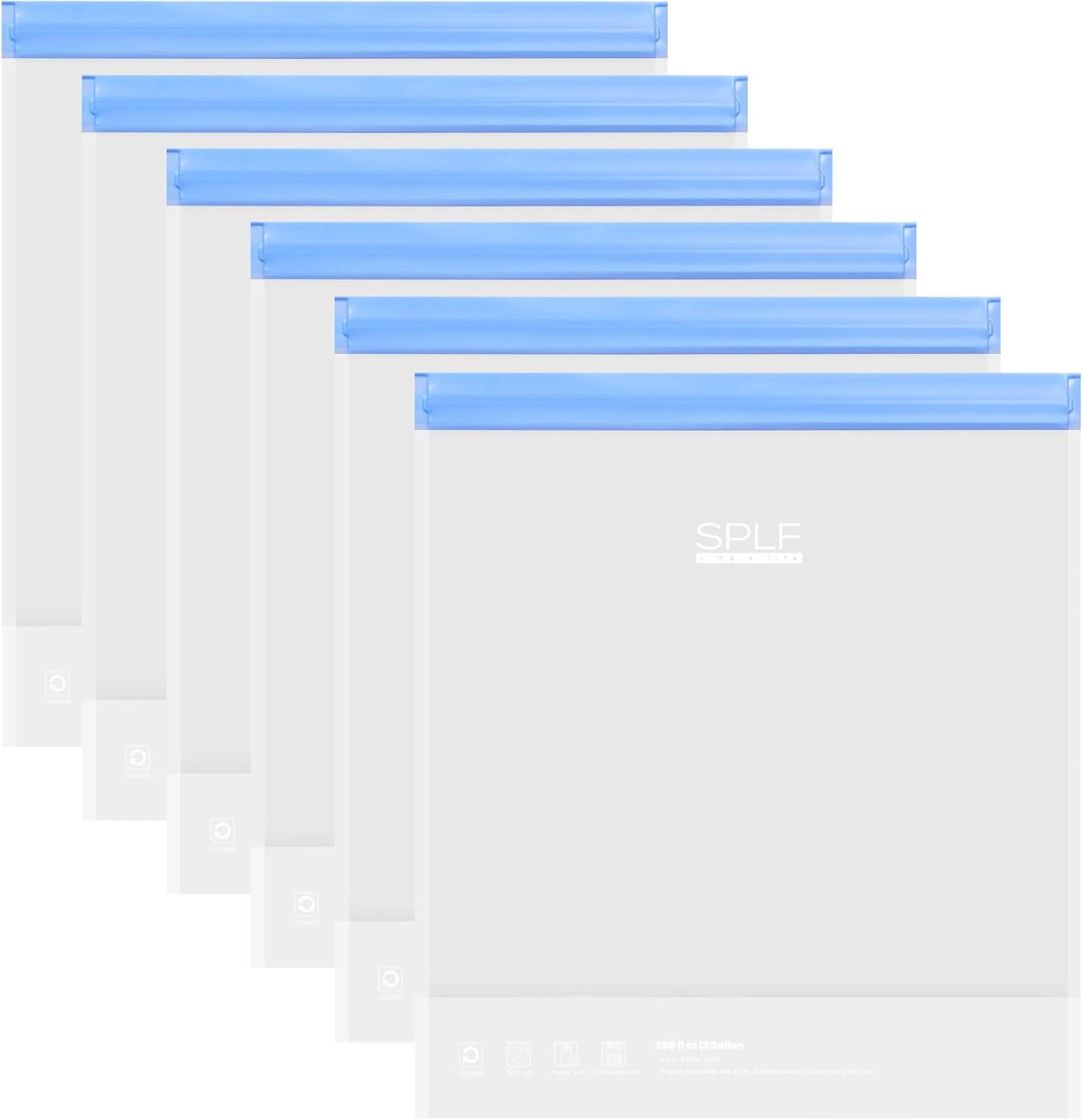 SPLF 6 Pack Stand-Up Reusable 2 Gallon Freezer Bags Dishwasher Safe, Reusable Freezer Bags 2 Gallon, Leakproof BPA Free Food Storage Bags for Marinate Meat, Veggies, Homemade Bread, Snack, Travel Item