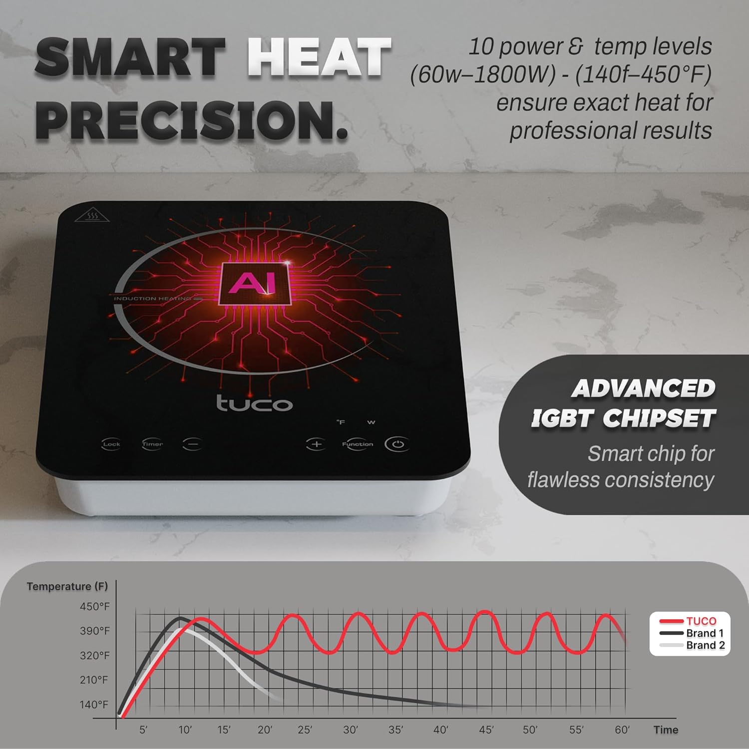 - π STABLE & RELIABLE PERFORMANCE: The TUCO Induction Cooktopβs advanced chip control system ensures precise power delivery and stable high-power output, even during extended use. Experience consistent results with every meal.
