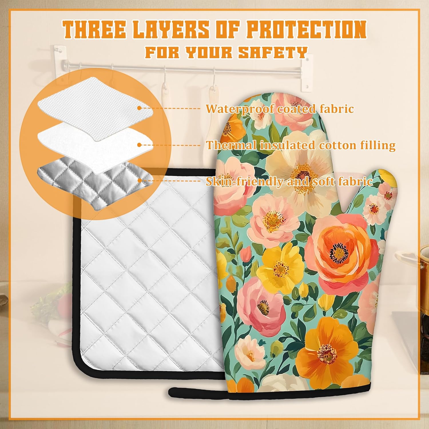 - Heat Resistant: Made from polyester and insulating cotton, these oven mitts and pot holders provide excellent heat resistance to effectively protect your hands from hot pots, pans, and baking trays. Cook with confidence and safety.