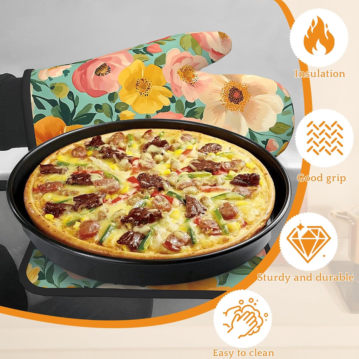 - 4-Piece Set: Includes 2 oven mitts and 2 heat-resistant pads, providing a practical and complete combination for your daily kitchen needs. Ideal for cooking, baking, grilling, and handling hot dishes.