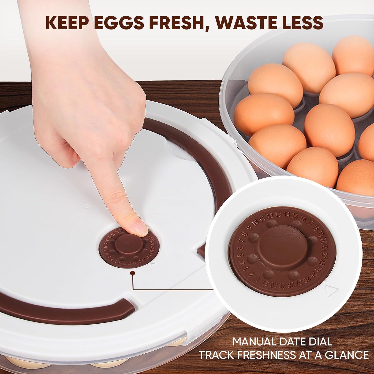 - 【Built-in Date Tracking Dial 】Smart date dial on the lid makes it easy to mark storage time, helping you track freshness, reduce food waste, and save money by using eggs before they expire.
