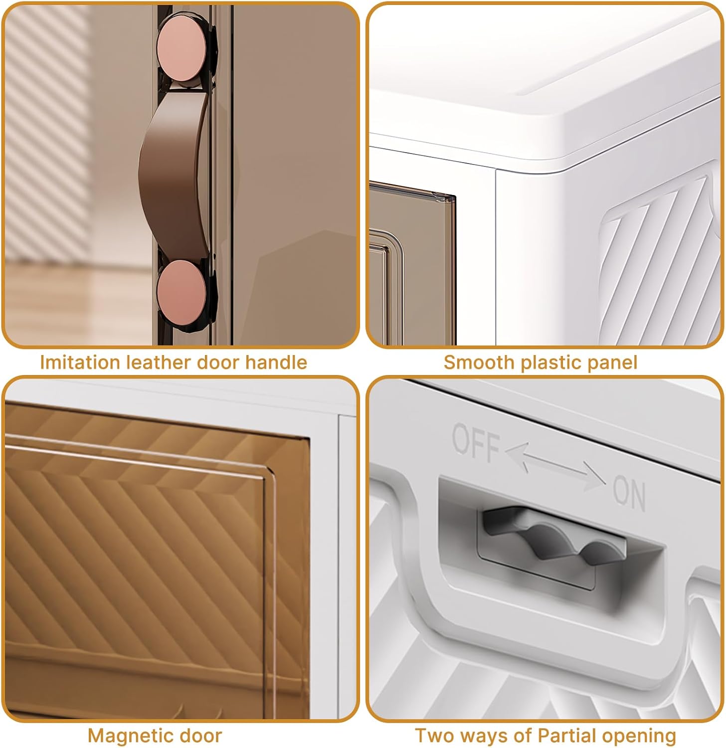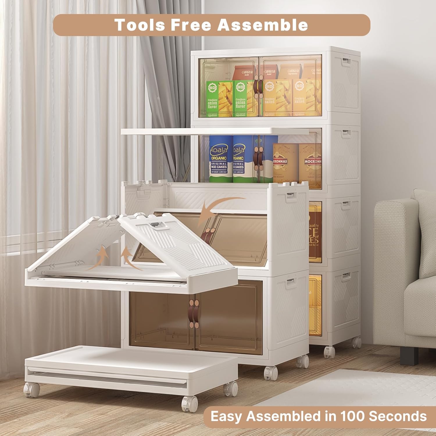 - EACH 2.6INCH FOLDABLE & TOOLS-FREE ASSEMBLY: Setting up these stackable storage bins with doors is quick and simple—NO TOOLS NEEDED. You can have them ready to use in just minutes.Easily fold down to JUST 2.6 inches each tiers when not in use. Especially when you want to move house, you don't need to move bulky cabinets and worry about them being damaged due to transportation. It is a good alternative idea to fixed furniture cabinets and small miscellaneous boxes!