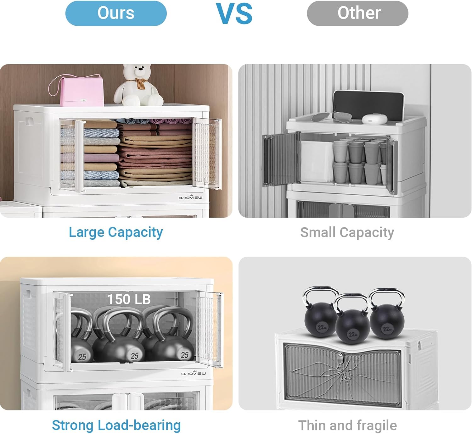 - ăSpace-Saving Stackable & CollapsibleăMaximize your storage footprint. Stack bins vertically as modular cabinets (bedside, clothing, books, kitchen) and collapse them nearly flat when not in use. Perfect for closets, laundry rooms, garages, playrooms, classrooms, dorms, and car trunks â featuring a roomy, odorless design.