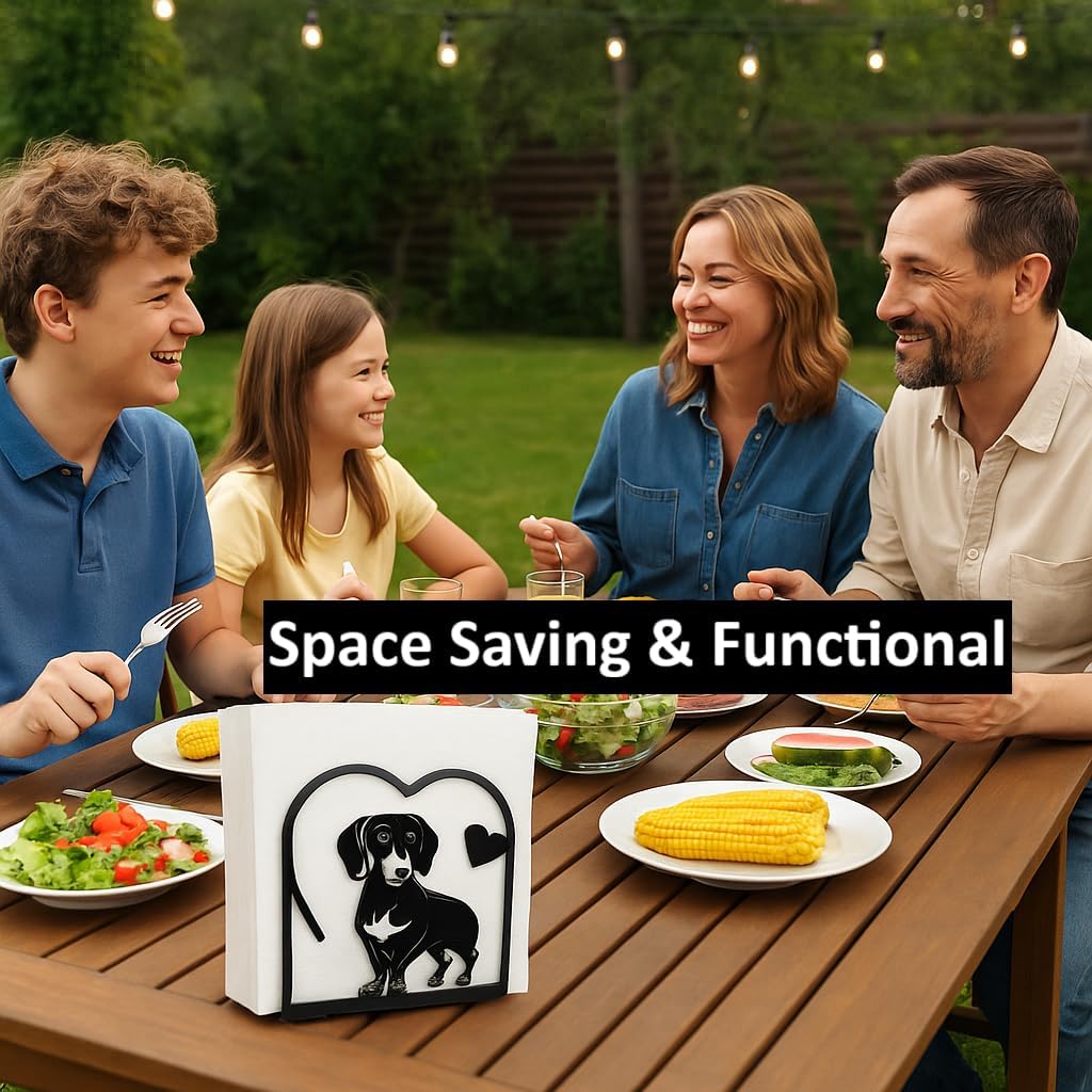- Perfect for Pet Lovers – Showcase your love for cats and dogs with this charming napkin holder set, featuring a heartwarming dachshund and a garden kitty design.