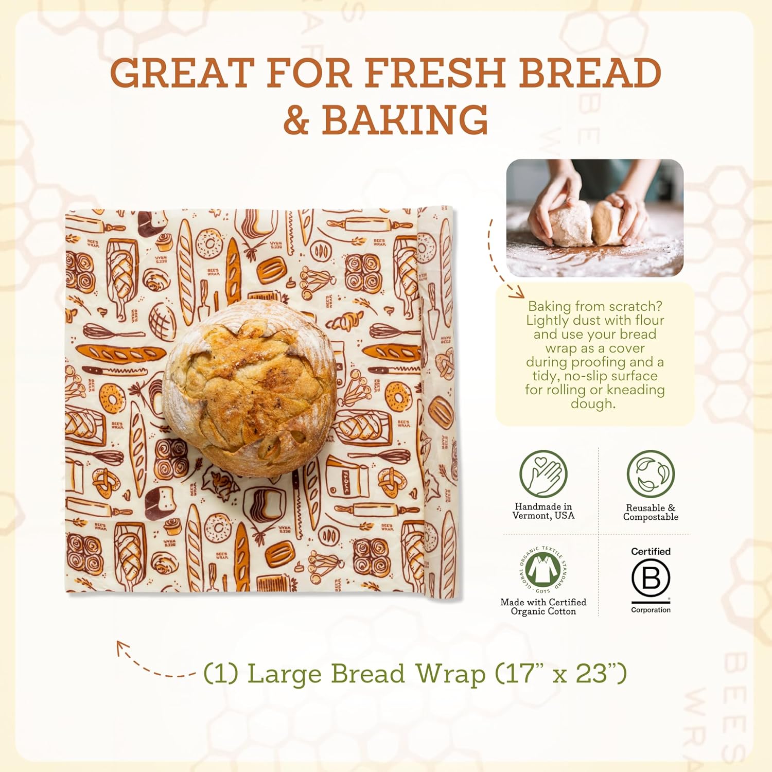 Bee's Wrap Beeswax Wraps for Food - Bakery Lane Bread Wrap - Made in USA Reusable Bread Storage Bags - Organic & Eco-Friendly Alternative to Aluminum Foil, Sourdough Bags & Plastic Wrap