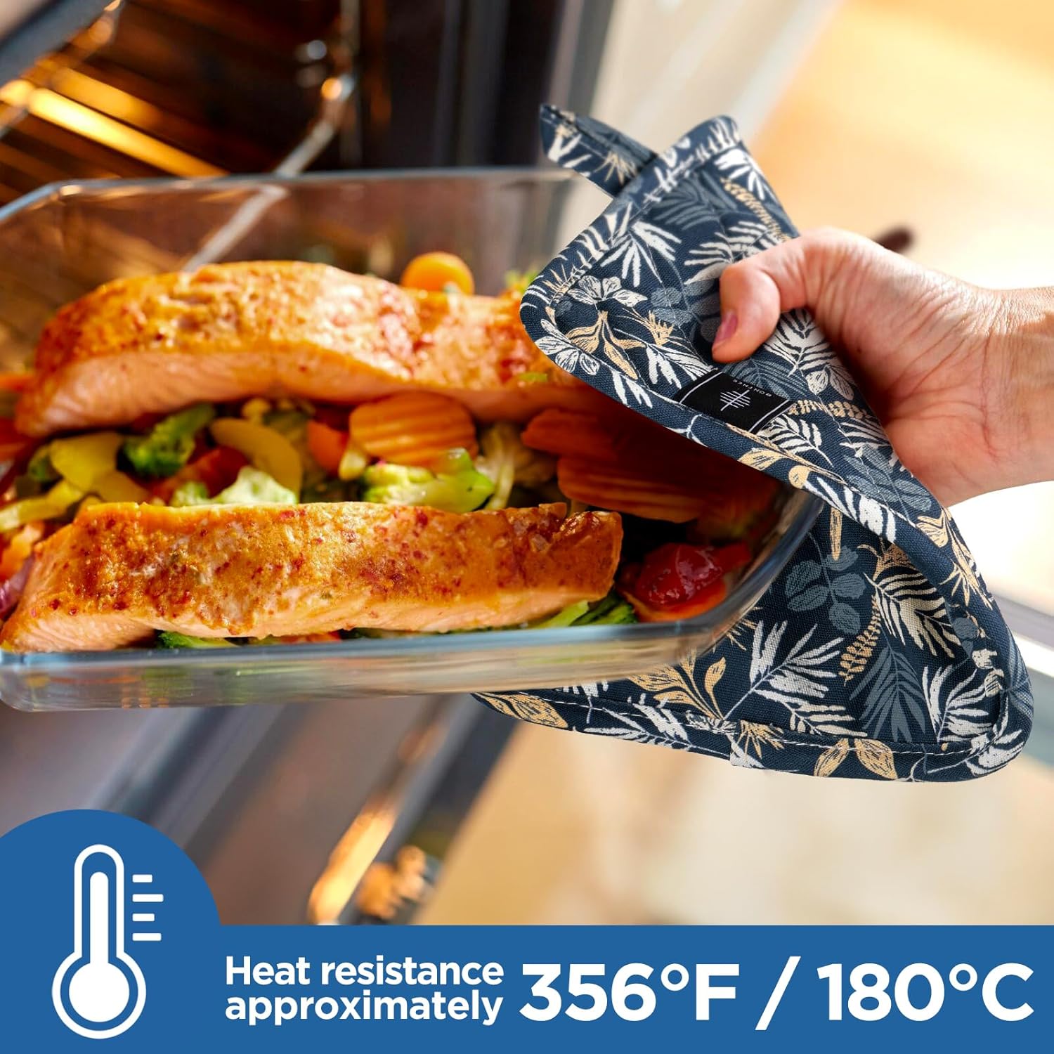 - [Heat-resistant Material] Each pot holder is made from high-quality, heat-resistant materials that can withstand temperatures up to 356β/180β. The thick padding ensures maximum insulation and prevents heat from reaching your hands, making it safe and comfortable to handle hot cookware.