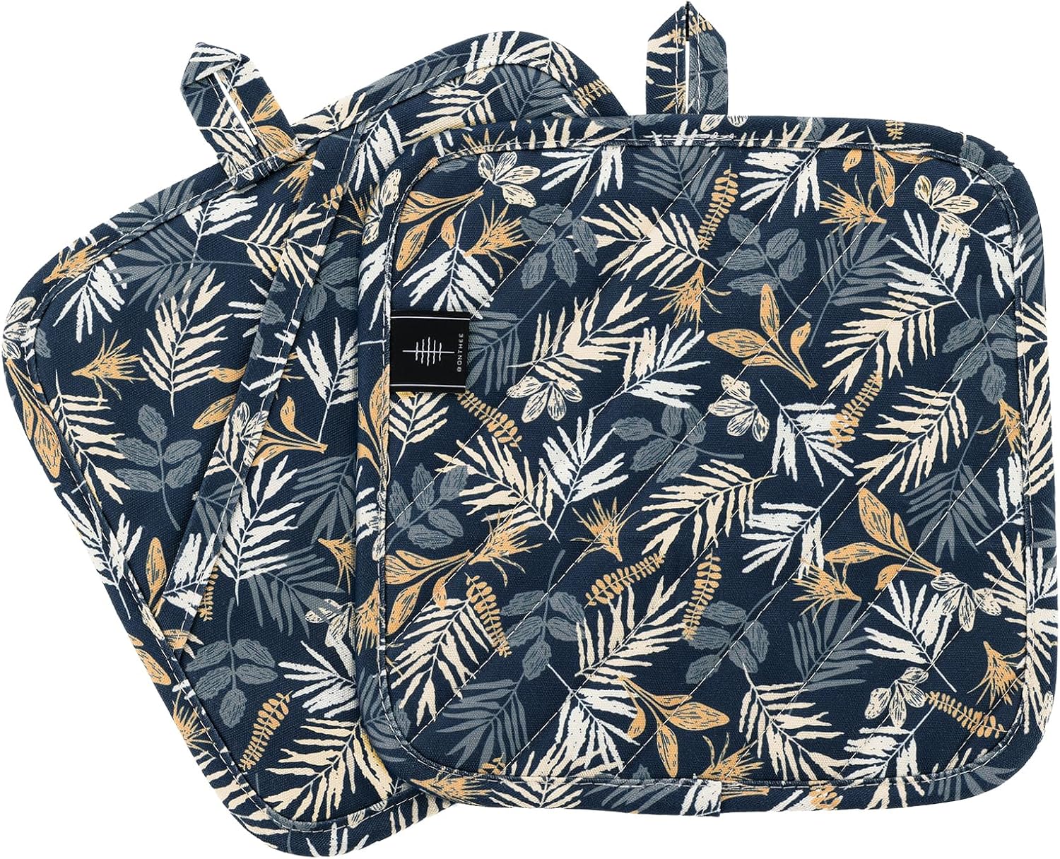 Pot Holders for Kitchen Heat Resistant Hot Pads for Countertops Oven Pot Holders Cotton Potholders for Kitchen Cooking Baking (Blue Leaves)