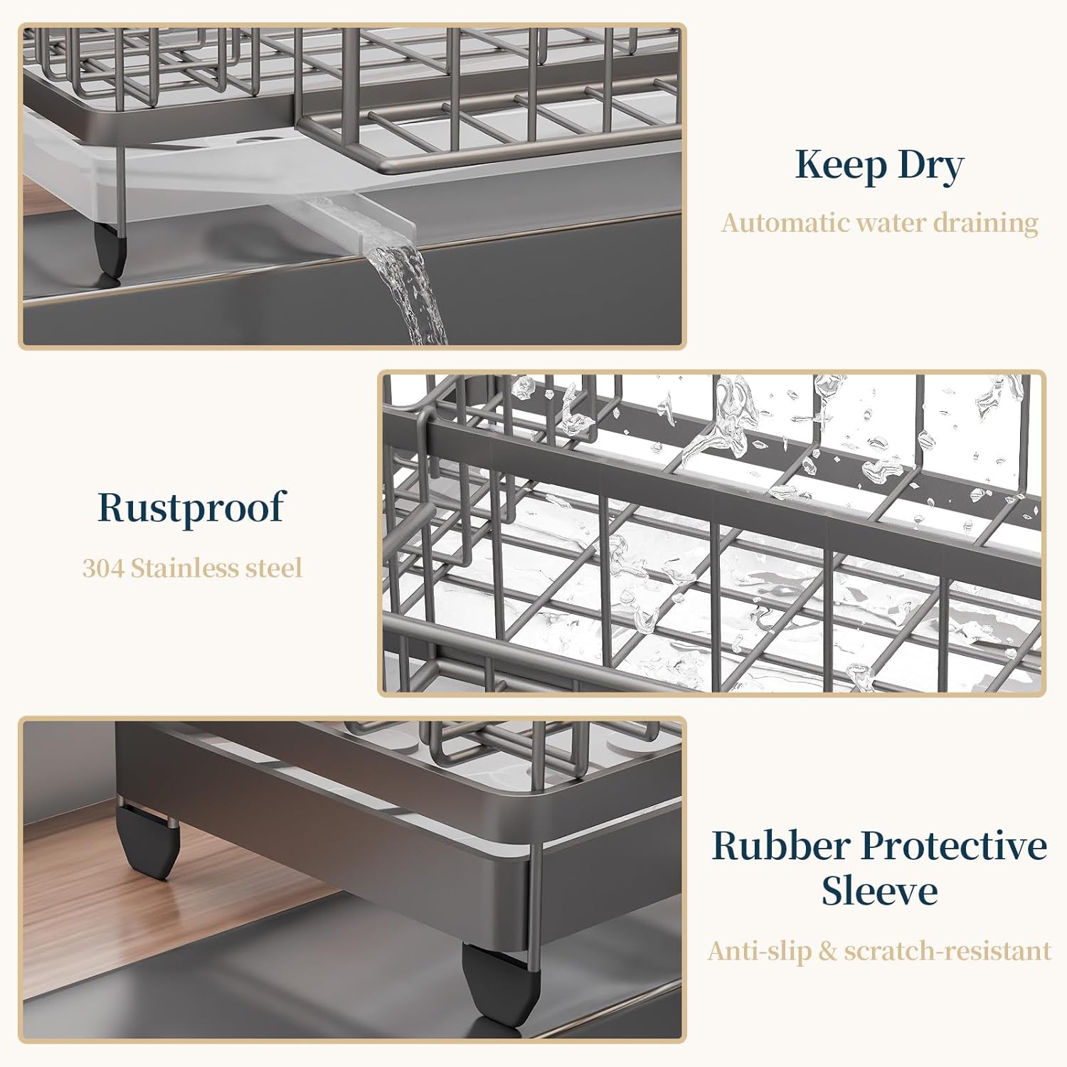 - [Dual Brush Stand Feature]: Built-in brush holder supports both long and short brushes vertically, saving space while keeping your tools accessible. This convenient sink sponge caddy design adapts to multiple brush sizes, ensuring no item is left out. Make your cleaning routine efficient and stylish with this multipurpose organization and storage upgrade for modern kitchens