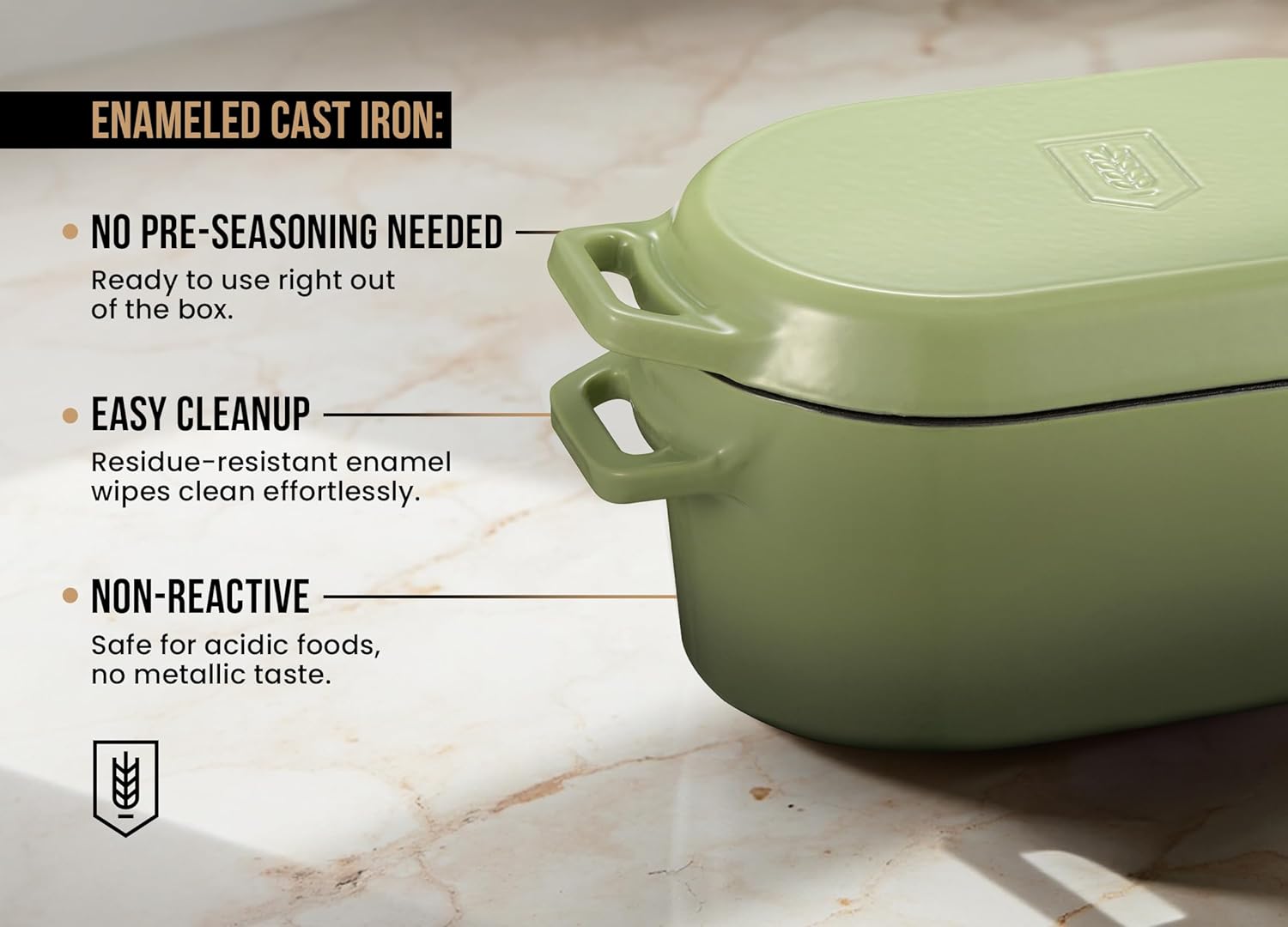 - Even Heat Distribution: Made from durable cast iron that ensures heat is evenly spread throughout the pot, for perfectly consistent cooking and no hot-spots. The thick walls keep food warm from oven to table and the smooth surface minimizes leftover sticky stains and residues. Overtime, it develops a patina for natural non-stick cooking and cleaning! Includes a lid lever for safe opening