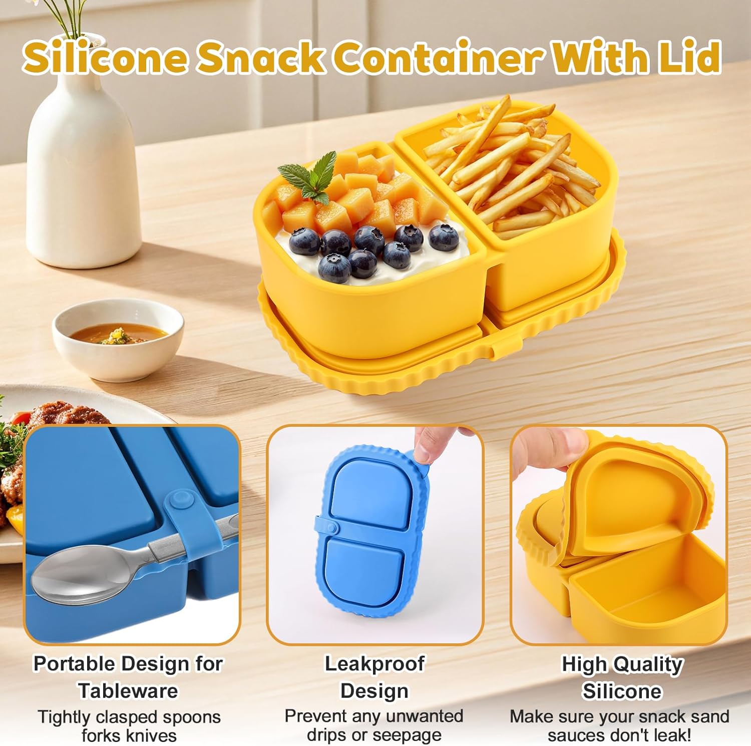 - DUAL COMPARTMENT DESIGN: 8 oz silicone container features 2 separate sections for organized snack storage, perfect for portion control and keeping foods separate