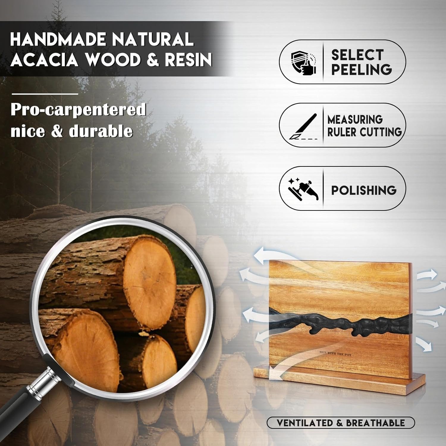 - [Thoughtful Kitchen Gift] Give the gift of thoughtfulness and practicality with MEN WITH THE POT magnetic block knife—a perfect blend of elegance and function, designed to bring organization and efficiency to your loved one’s kitchen. Material knife block eliminates clutter and mess, and effortlessly complements any kitchen style. More than just a tool, it’s a thoughtful gesture that enhances everyday joy—ideal for any home that values both style and substance