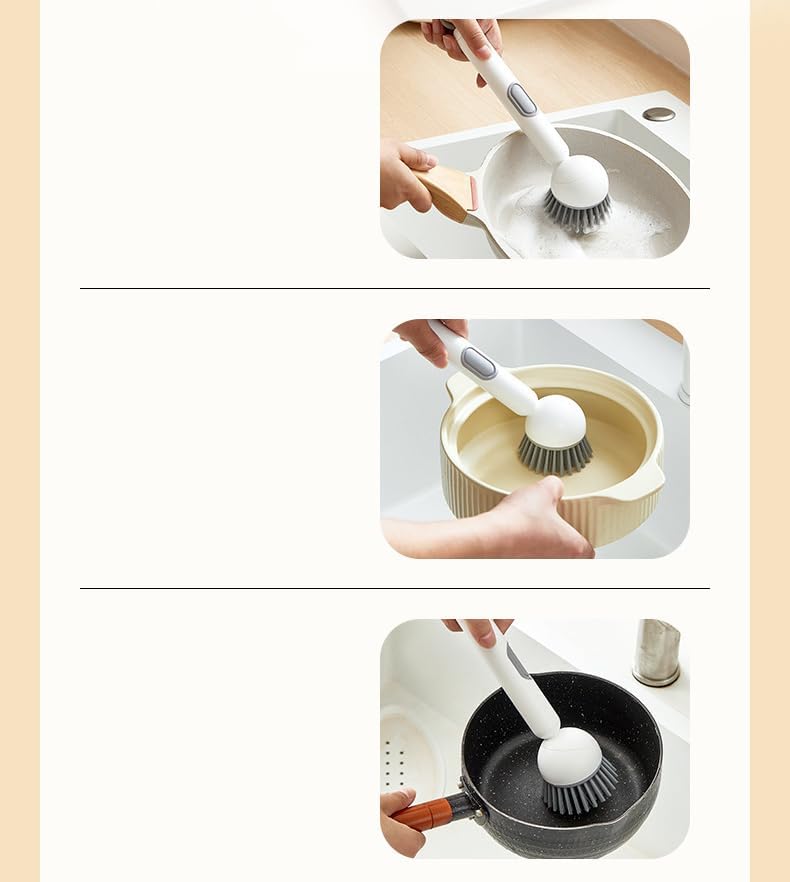 - Made from high-abrasion PET material that wonโt deform or shed. Make dishwashing easier with this multi-function cleaning brush featuring a 6-level adjustable handle and built-in liquid dispenser