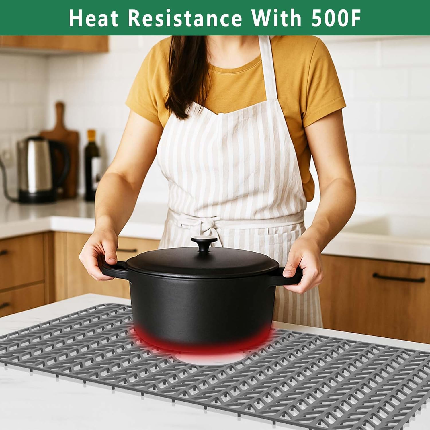 - 【Easy to Use】Our kitchen sink mats and protectors can handle up to 500f, heat-safe silicone for placing pots and pans in sink directly from stove, the superior finish looks sleek, modern and stylish in your kitchen sink
