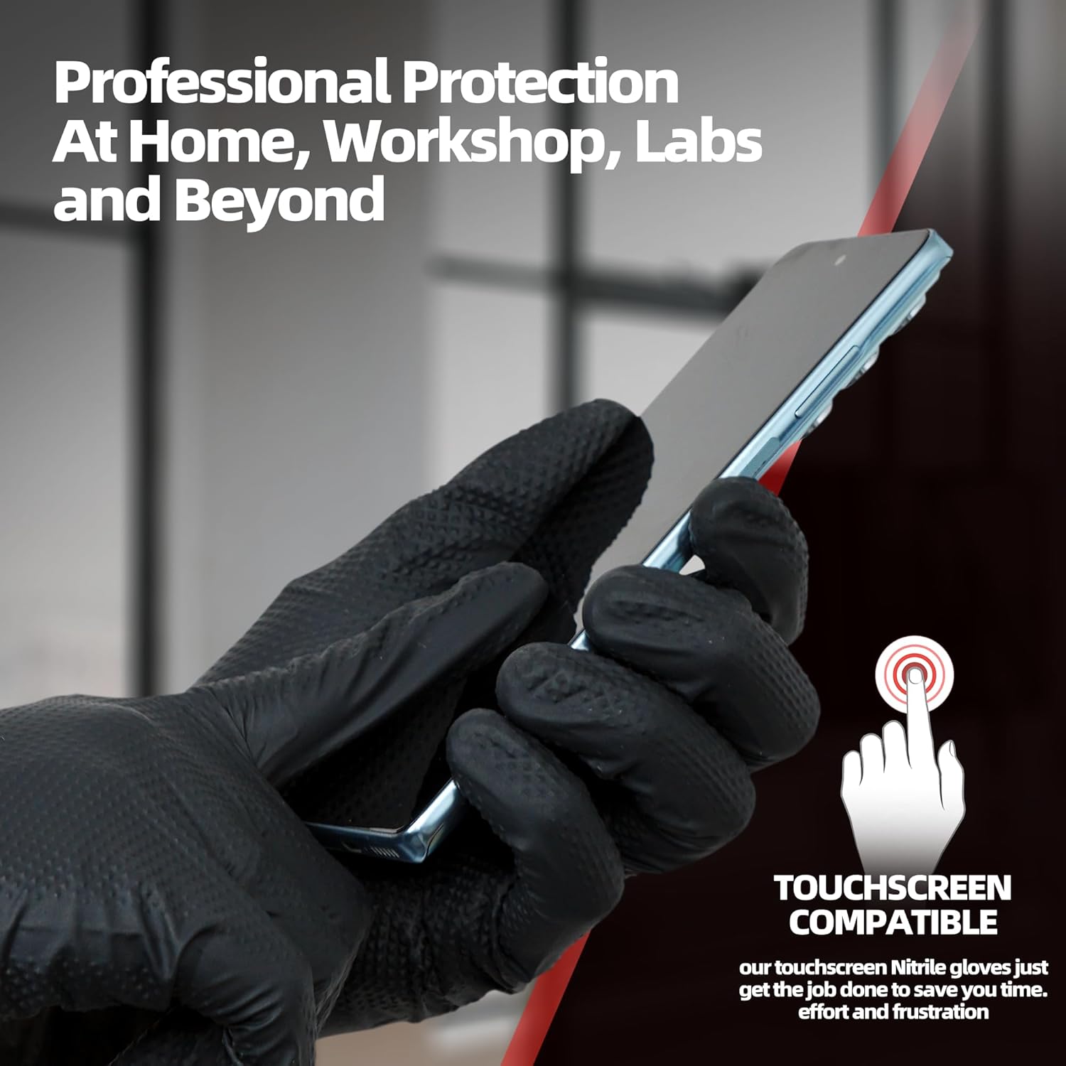 - Raised Diamond Texture: Featuring raised diamond patterns on the fingers and palms, these diamond grip gloves offer 60% more gripping power than standard nitrile gloves, ensuring dexterity and control even in wet or slippery conditions