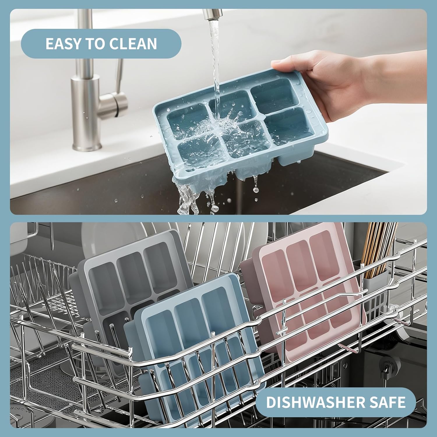 Large Silicone Ice Cube Tray Set of 3, Easy Release 6 Flexible Silicone Ice Cube Molds with Removable Lid, Reusable Freezer Stackable Ice Trays for Whiskey, Baby Food, No Floater, BPA Free