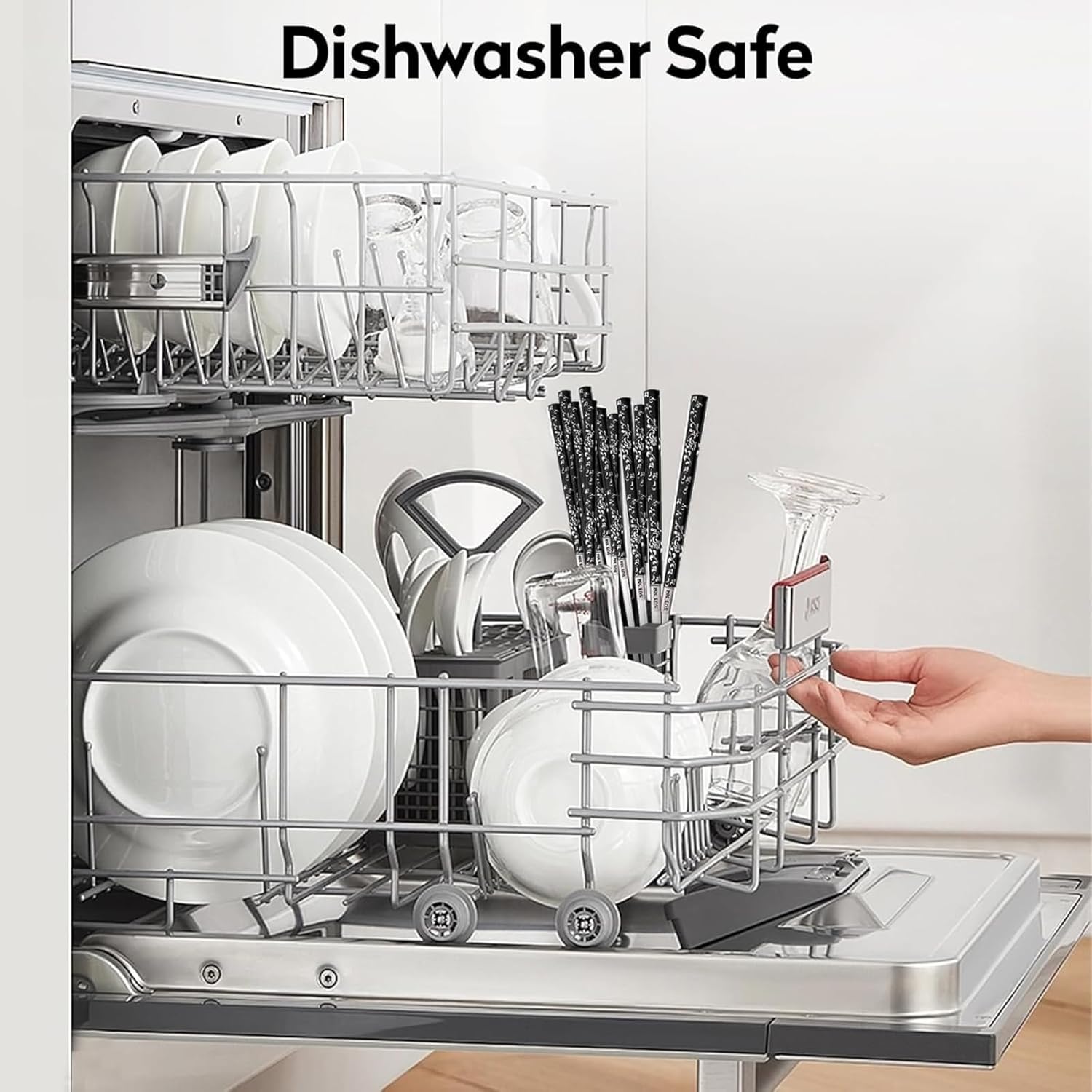 - 【Built to Last】: Made from high-quality SUS304 stainless steel, these chopsticks are durable, heat-resistant, and dishwasher safe. They withstand daily use without warping or wear, making them a timeless addition to your tableware.