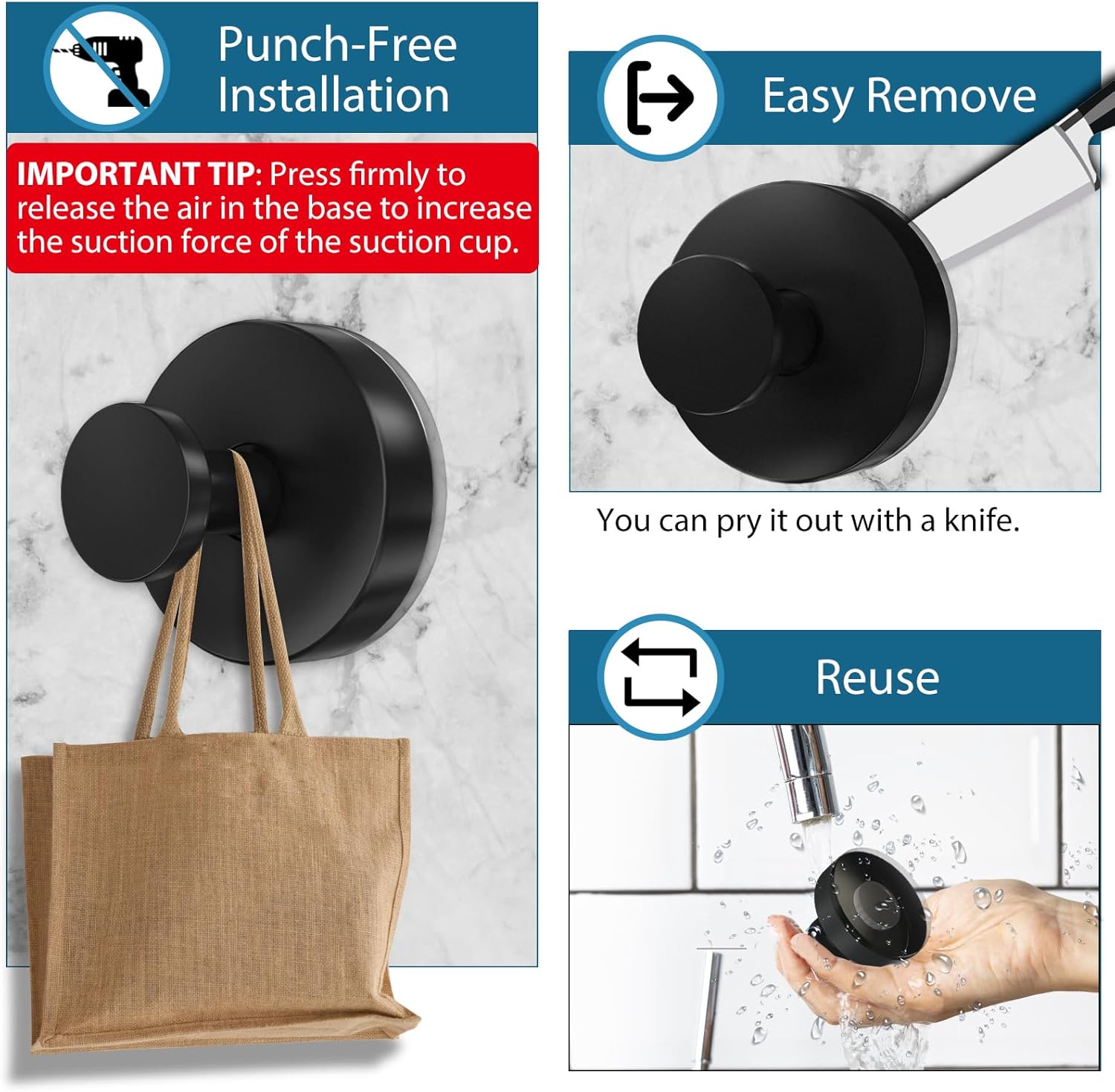 - 【Amazing Load-Bearing Capacity】 The suction cup hook for shower features a super-sticky silicone base. Releasing the air in the base can enhance the suction force of the suction cup and achieve a very strong load-bearing effect. The maximum load can reach a wonderful 15 lbs.