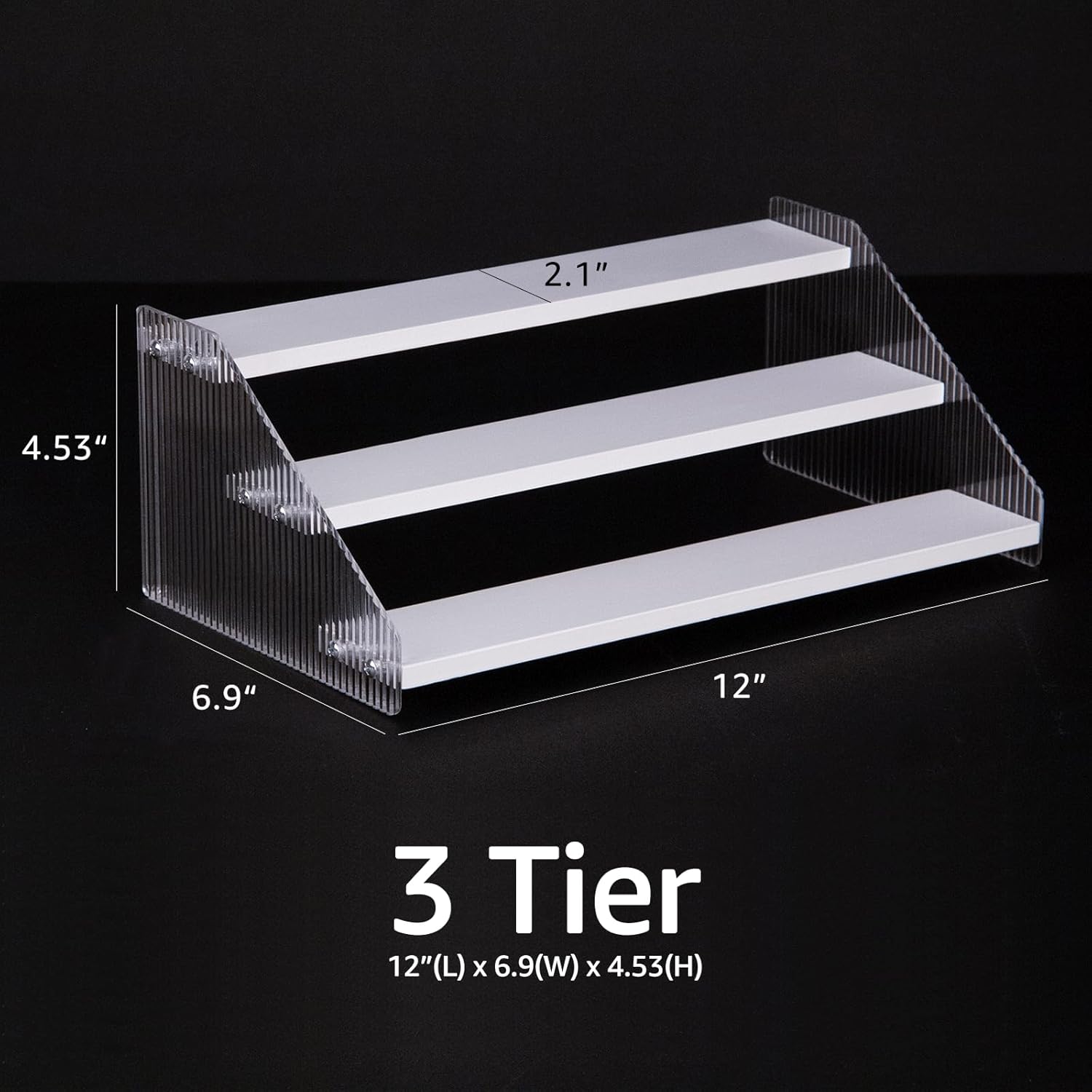 nianfeng Tiered Spice Rack, 3-Tier Spice Pantry Kitchen Cabinet Organizer, 12-Inch, Natural Wood Acrylic Stair Riser Stand, Countertop Seasoning Shelf (White)